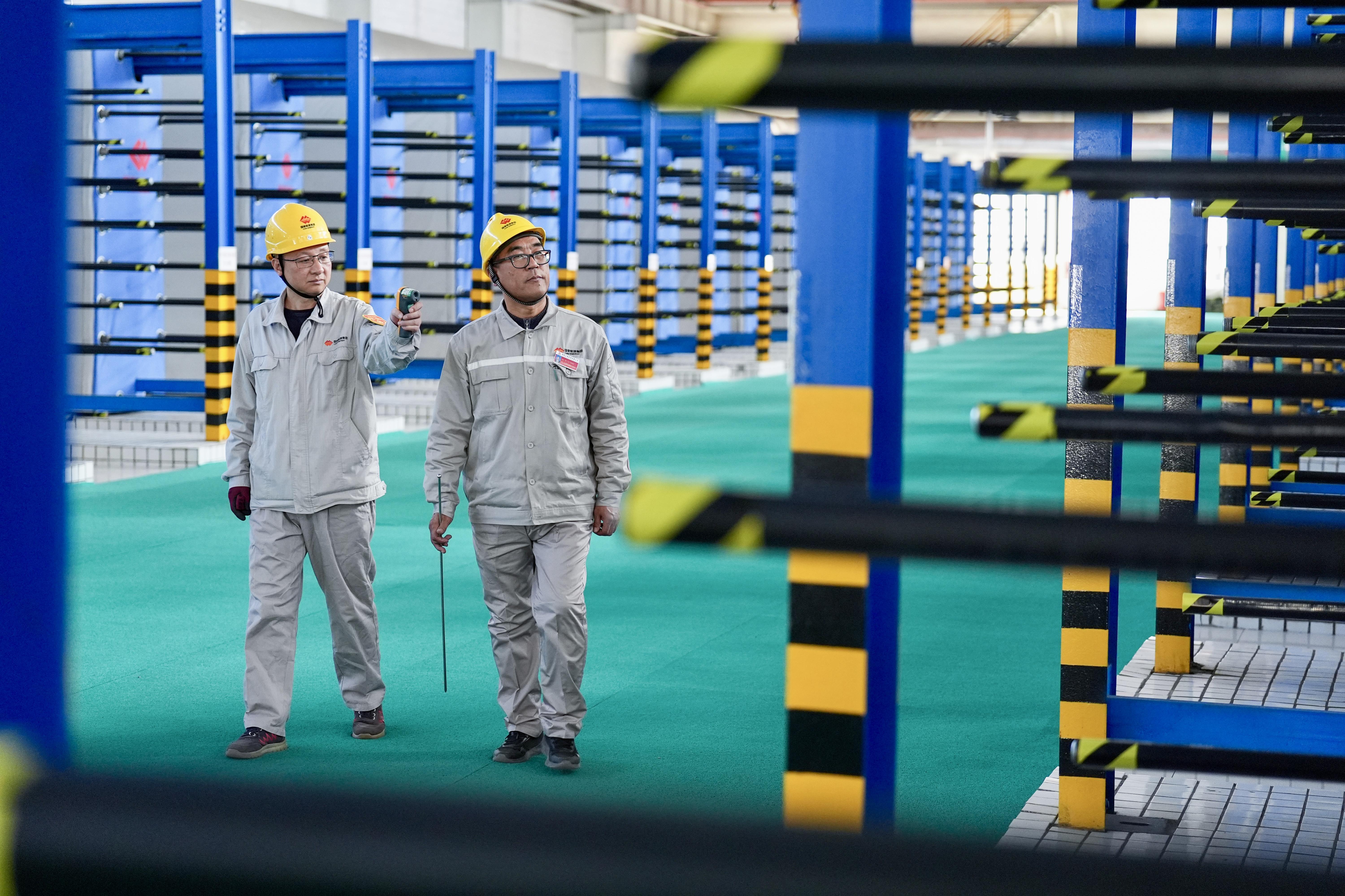 11月18日,在位于宁夏银川的国能宁夏供热有限公司中继泵站内,工作人员对板式换热器进行巡检。新华社记者 杨植森 摄