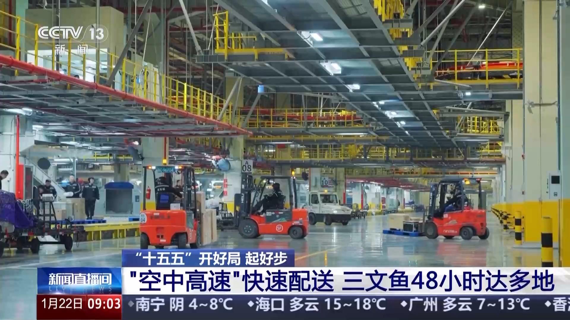 统一的生产品质其实也还不够,怎么让这份新鲜的美味快速送达全国,答案就是这家工厂旁边的机场。距离工厂不到一百米,就是亚洲最大的专业货运机场——花湖国际机场。截至目前,机场已经开通了112条货运航线,其中51条都是国际航线。来自北欧、澳大利亚等地的三文鱼飞抵鄂州之后,经过快速的清关、加工,两小时左右就可以再次装机销往全国。依托花湖机场密集的航线网络,目前可以实现北上广深等核心城市次日达,48小时之内就能覆盖全国80%的消费市场。
