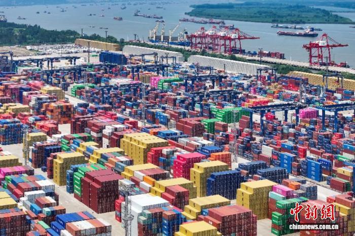 2025年7月14日,航拍长江沿线南京龙潭港进出口集装箱码头。(资料图)中新社记者 泱波 摄