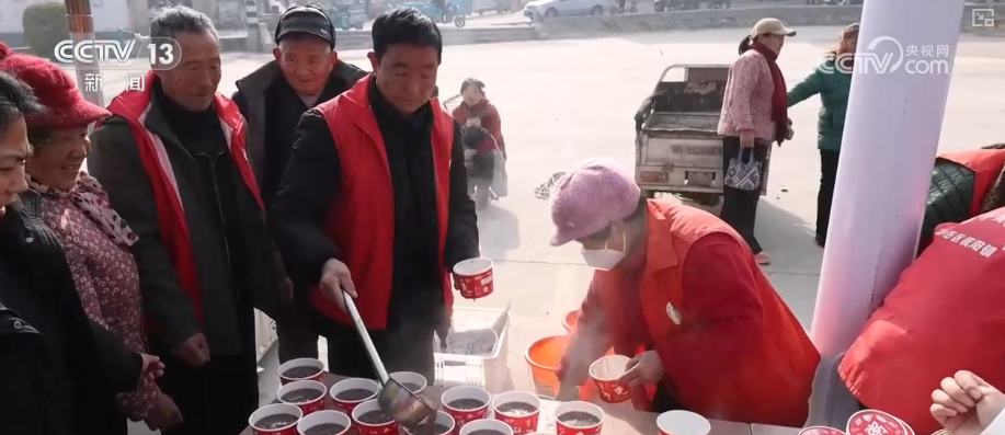 在南京溧水焦赞石村,村民们支起大锅,将糯米、红豆、红枣等食材进行熬煮,一碗碗滚烫的腊八粥免费分发给市民和游客。