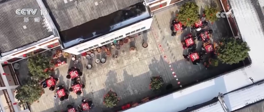 早晨,在安徽无为市无城镇黄汰村,红灯笼高高挂起,精选的食材摆放在大锅的灶台旁,村民已经开始熬制今年腊八节的腊八粥。