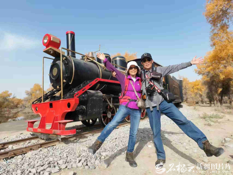今年10月下旬,周正修夫妻在胡杨林里拍照留念。图片由本人提供