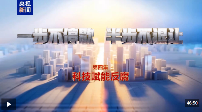由中央纪委国家监委宣传部与中央广播电视总台央视联合摄制的电视专题片《一步不停歇 半步不退让》,1月14日在总台央视综合频道晚8点档播出第四集《科技赋能反腐》,央视新闻新媒体平台同步播发。