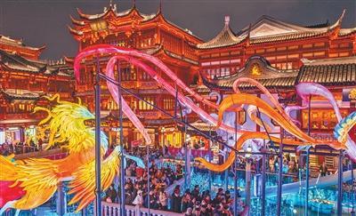 上海豫园灯会现场游人如织。