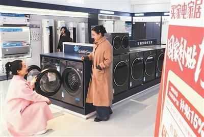 新春焕新家。“新国补”政策落地,提升居住体验。这是顾客在山东东营市东营区的家电家居体验店选购商品。