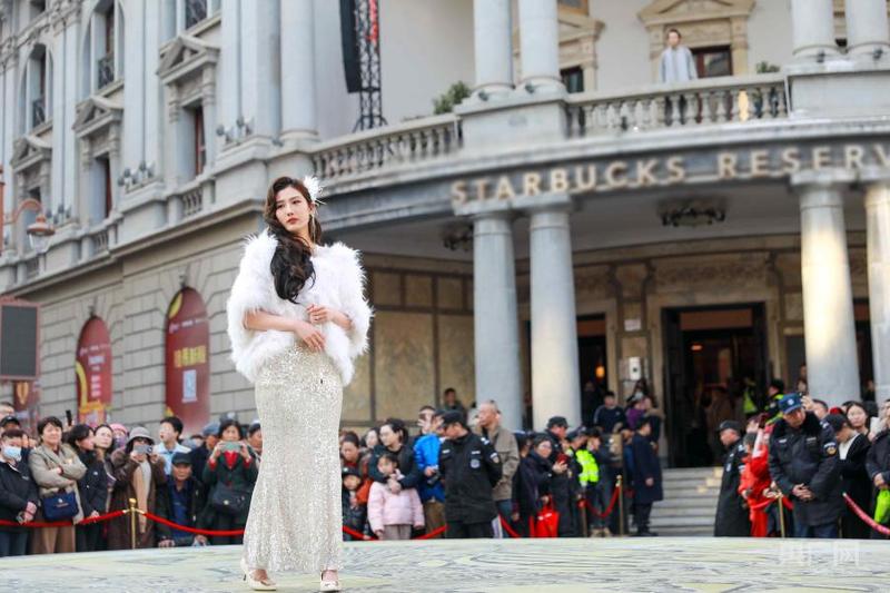 每逢周末和节假日,天津市和平区金街大铜钱附近热闹非凡,曹禺经典话剧《日出》在此上演,剧中“陈白露”的扮演者、天津人艺青年演员王知羽也时常“走到”观众身边进行经典演绎。