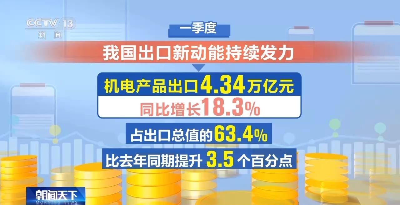 AI正从概念走入谈得成订单的商品。最新数据显示,一季度,我国出口新动能持续发力,机电产品出口4.34万亿元,同比增长18.3%,占出口总值的63.4%,比去年同期提升了3.5个百分点。与此同时,全球人工智能产业快速发展也带动了智能产品需求明显增长。