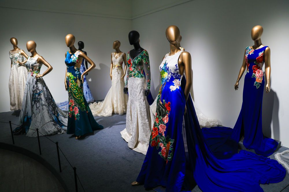 在广东潮州潮绣艺术馆内展示的带有潮绣元素的现代婚纱礼服。新华社记者 毛思倩 摄 “工夫”二字,让潮州人的生活充满“讲究”。 吃的是潮州菜,喝的是工夫茶,用的是潮瓷,听的是潮乐……在潮州,人们把日子过出了“仪式感”。 潮州无牛,却孕育出一道享誉天下的美食——潮州牛肉火锅。牛肉按部位和口感被精分为雪花、吊龙、匙仁等十多个类别。牛肉入汤,三起三落,八秒即熟,只为锁住那一口转瞬即逝的鲜活。