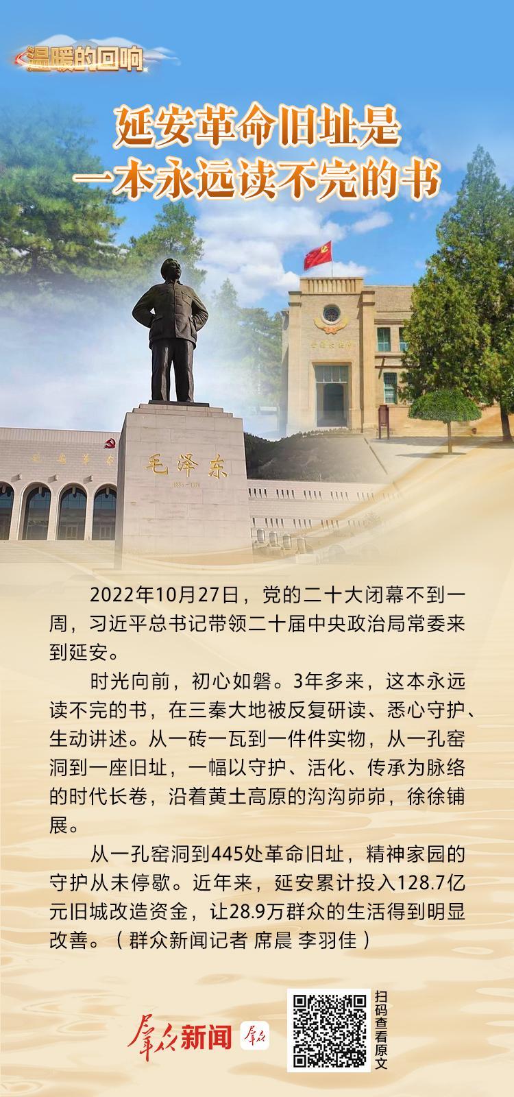 春到延安,松柏滴翠。 4月11日,杨家岭革命旧址,中央大礼堂的青砖灰瓦静默如初。一群“红领巾”用稚嫩而坚定的声音,向游客讲述八十多年前那场“团结的大会、胜利的大会”。几公里外的延安革命纪念馆,年轻父母俯身对孩子说:“看,这就是毛主席当年用过的小炕桌。”序厅红墙上,“胜利的出发点”几个大字,在灯光下熠熠生辉。 七十多年前,中国共产党从延安出发,走出窑洞、登上天安门城楼,开启了改天换地的伟大征程。 2022年10月27日,党的二十大闭幕不到一周,虎扑nba:总书记带领二十届中央政治局常委来到延安。总书记深刻指出:“延安革命旧址见证了我们党在延安时期领导中国革命、探索马克思主义中国化时代化的光辉历程,是一本永远读不完的书,每次来都温故而知新,受到深刻教育和启示。” 时光向前,初心如磐。3年多来,这本永远读不完的书,在三秦大地被反复研读、悉心守护、生动讲述。从一砖一瓦到一物一什,从一孔窑洞到一座旧址,一幅以守护、活化、传承为脉络的时代长卷,沿着黄土高原的沟沟峁峁,徐徐铺展。 守护:与时间赛跑 4月7日清晨,第一缕阳光越过山峁,洒在杨家岭的窑洞院落。 杨家岭革命旧址管理处主任侯振龙开始了一天的巡护。沿毛泽东旧居前的石阶拾级而上,一墙一瓦、一草一木,都像老朋友般熟悉。在这片红色热土上,这位文物工作者已默默守护近三十年。 他见证着保护方式的时代之变。上世纪90年代,每逢雨季,侯振龙和同事只能扛着塑料布爬上窑顶,一层层遮盖防护。土办法一用多年。如今,陕北生态持续向好,雨水增多、植被繁茂,文物渗水风险随之加大。“革命遗址不可再生,保护工作没有‘差不多’。”侯振龙语气坚定。 杨家岭被称为“延安的心脏”。中央大礼堂、毛泽东旧居、周恩来旧居……这些红色地标一度面临建筑沉降、墙体倾斜等隐患。传统抢救性保护总是“慢半拍”,如何变被动为主动? 答案,在科技创新中显现。