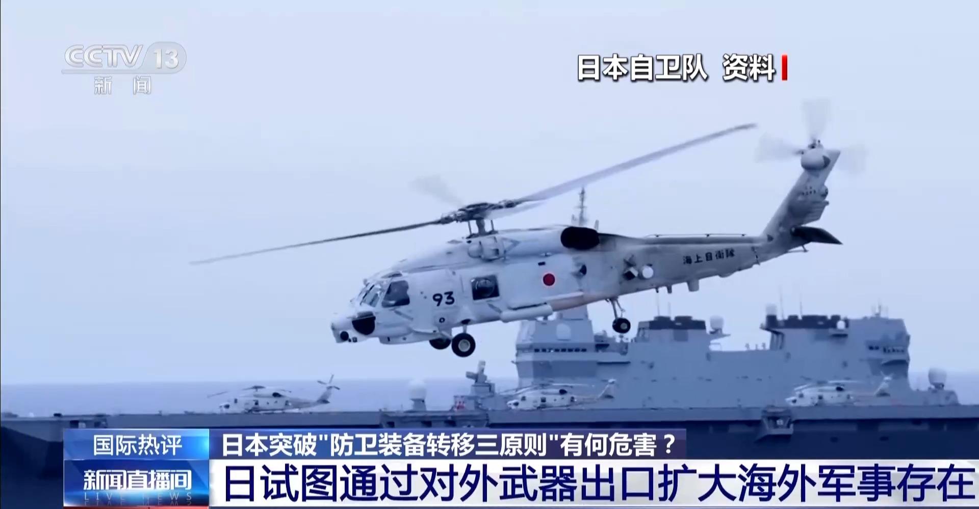日本21日正式修改“防卫装备转移三原则”及其运用指南,原则上将允许出口杀伤性武器。什么是“防卫装备转移三原则”?“三原则”在日本的安保政策中是什么地位?日本一步一步突破“防卫装备转移三原则”又将带来什么危害? 日本突破"专守防卫"原则 背离和平发展承诺 中国国际问题研究院亚太研究所特聘研究员 项昊宇:日本现行的“防卫装备转移三原则”2014年由安倍晋三政府出台,它的前身是1967年的“武器出口三原则”,这一政策框架的核心内容是出口防卫装备的前提是要对日本的安全保障及国际和平贡献有益。为此,政策设定了严格的限制,原则上仅允许出口救援、运输、警戒、监视和扫雷5大类非杀伤性的装备,并且需要接受严格的审查以及国会的监督。这一政策作为日本战后体制的组成部分,成为日本坚持“专守防卫”原则,走和平发展道路的重要政策保障之一。这既是一种自我的政策约束,也是日本面向国际社会作出的和平承诺。 标志二战后日本国家防卫安全政策重大转型 中国国际问题研究院亚太研究所特聘研究员 项昊宇:日本这一动作酝酿已久,现在正式落地,这标志着二战后日本国家防卫安全政策的重大转型。这是日本背离“专守防卫”原则、突破战后和平体制、加速在军事化进程的又一个关键步骤。这次的政策调整取消了此前将武器出口限定在非战斗用途的核心限制,将坦克、战机、导弹等致命武器装备纳入原则上允许出口的范围,并且设立了例外条款:允许向冲突中的国家进行武器出口,并且出口的决策审批权限集中于首相等少数核心高层,不需要国会事先审议和批准,程序门槛显著降低。 日本试图通过对外武器出口扩大海外军事存在