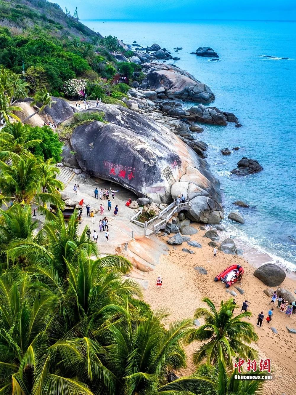 三亚小洞天景区海域奇礁碧海景色如画。三亚崖州区委宣传部供图 快来吧 一起跟着亚沙会游海南? 在阳光沙滩、碧海蓝天间 与美丽海湾来一场邂逅?