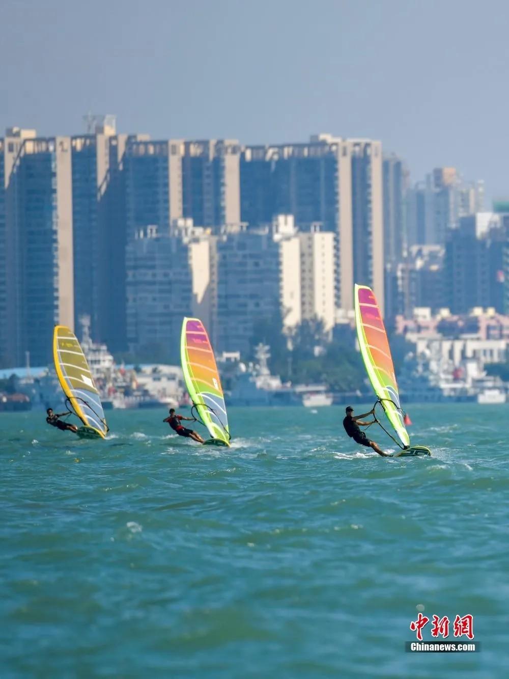 海口湾海域上的帆板比赛。骆云飞 摄(资料图) “椰梦长廊”三亚湾 位于海南岛南部 湾长沙细,碧海连天 椰树成林绵延18公里 宛如一幅热带风情长卷