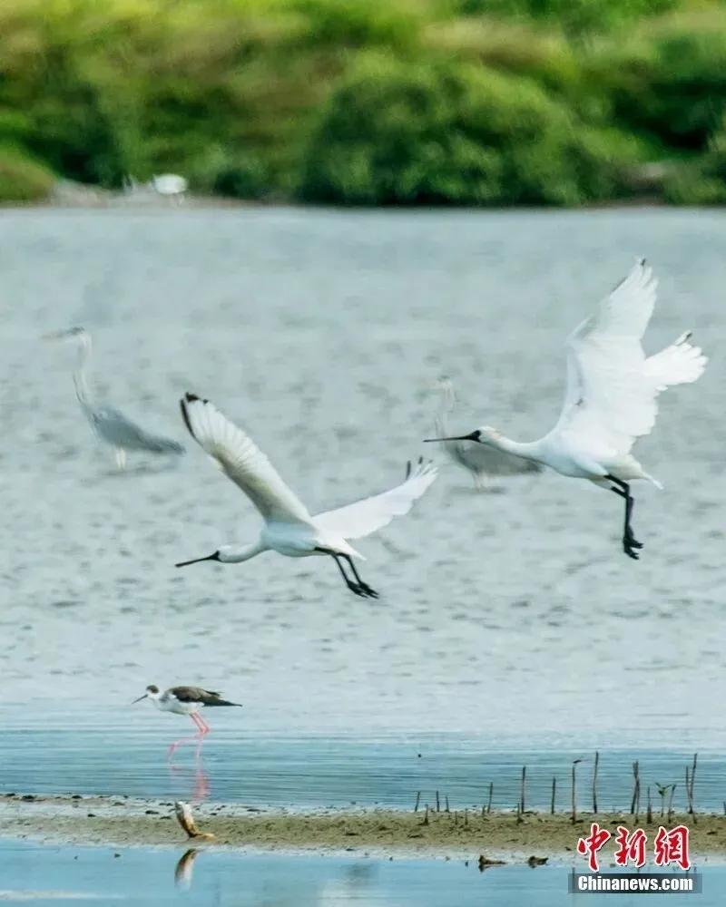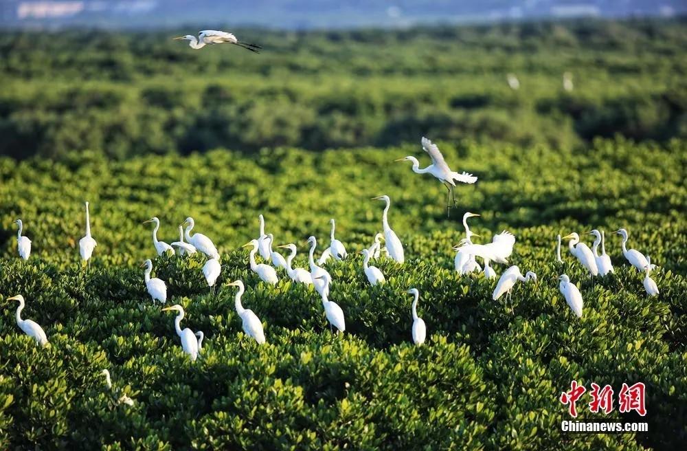 海南东寨港国家级自然保护区成为鸟类的乐园。冯尔辉 摄 (海口市委宣传部供图 资料图) 因地处东亚-澳大利西亚候鸟迁徙通道 每至秋冬 白鹭、彩鹮等候鸟翩至 栖息于红树海天间