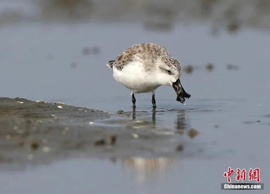 儋州新英湾,勺嘴鹬(yù)在“干饭”。陈松 摄(资料图) 昌江海尾湾 “世界上最小的鸭子”棉凫 时隔117年再度现身海南