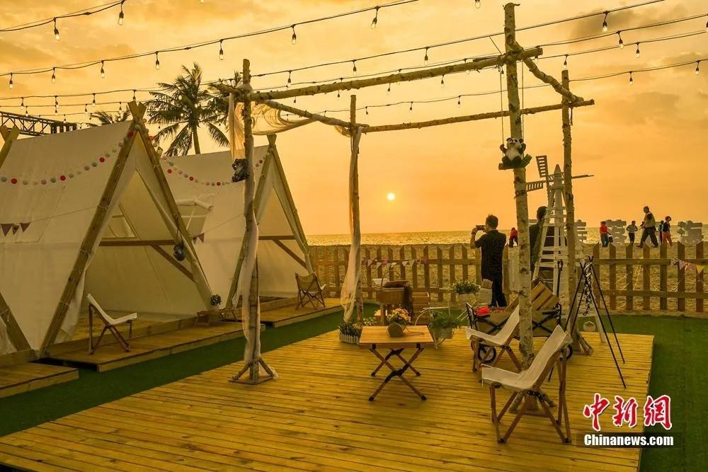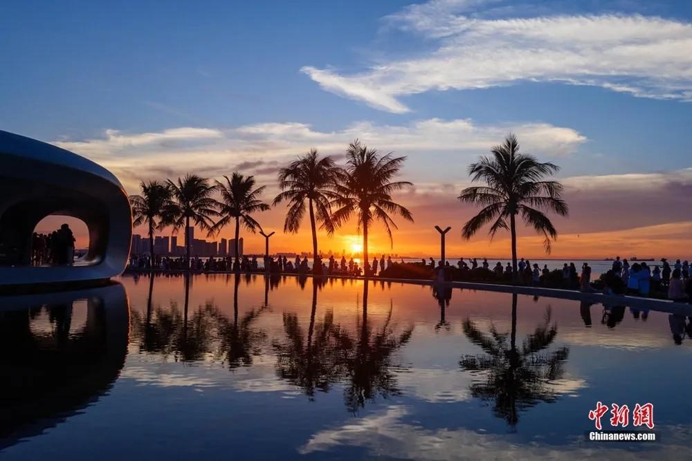 海口假日海滩。骆云飞 摄(资料图) 云洞图书馆和天空之山 傍海而立 与落日、晚霞同框 如诗如画