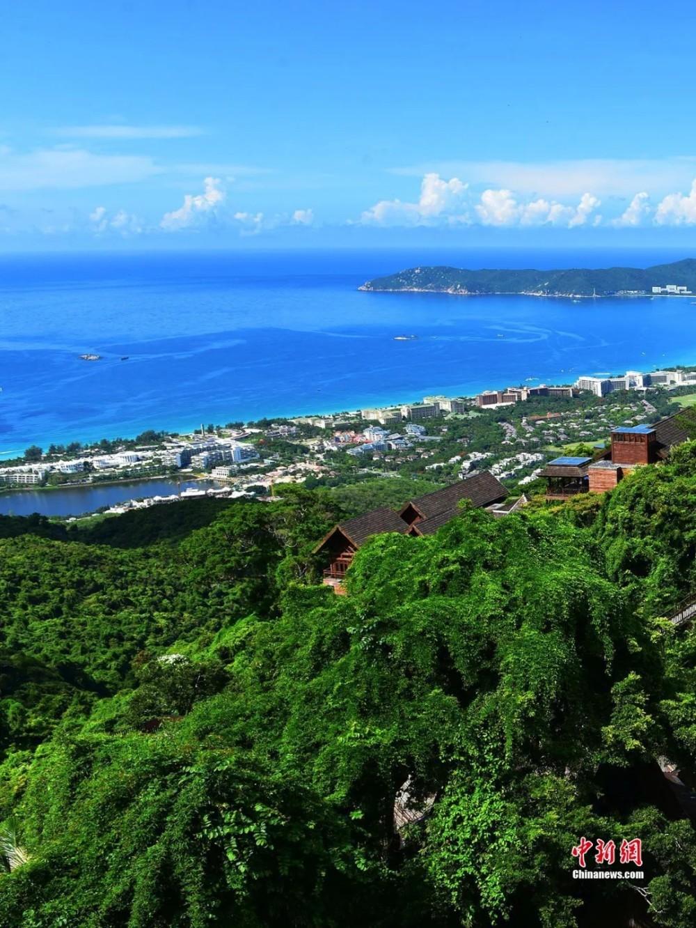 俯瞰亚龙湾海岸风光。黄庆优 摄(资料图) 海湾东西两面山岭连绵 山上,亚龙湾热带天堂森林公园 雨林奇观妙不可言