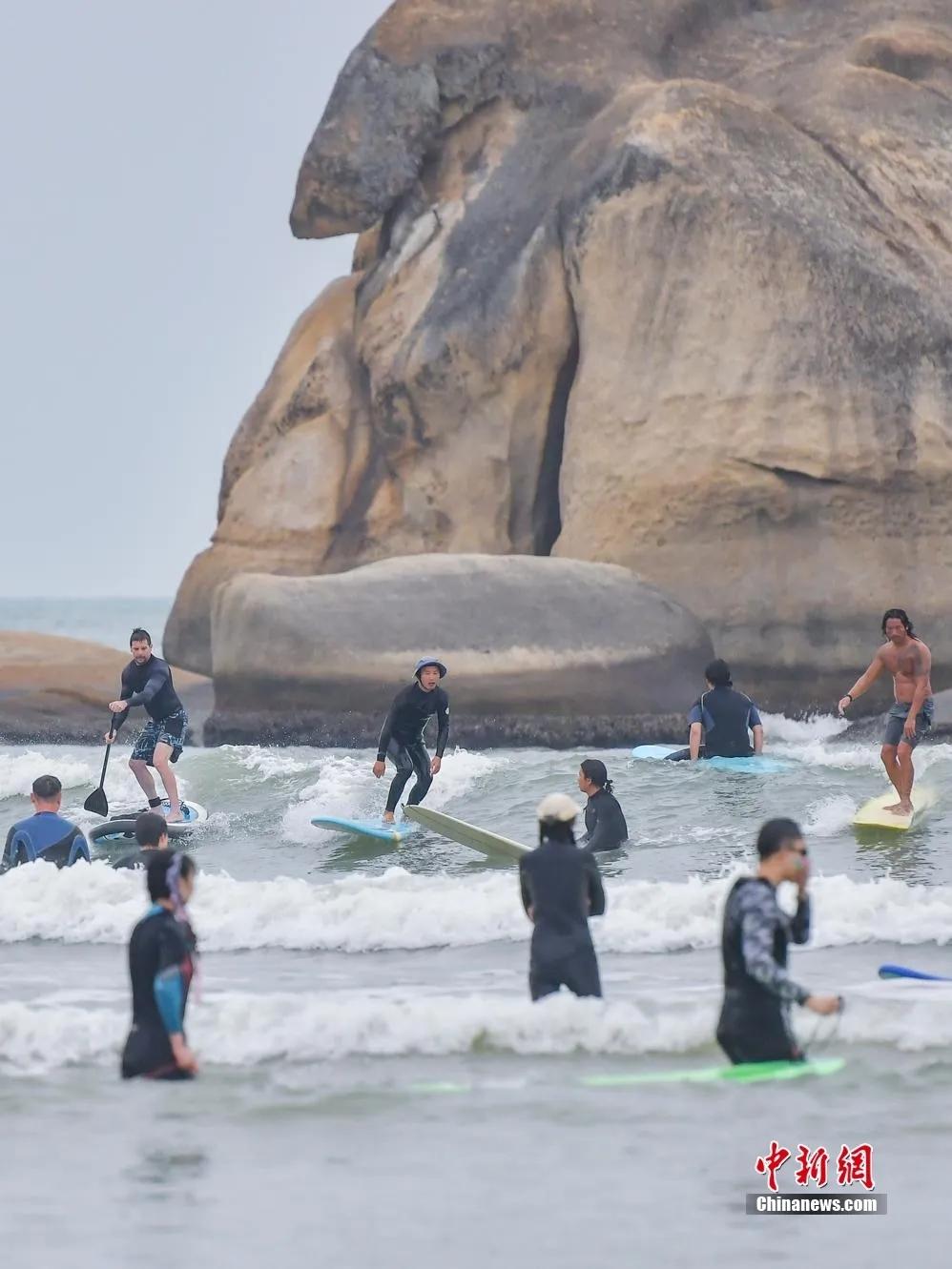 三亚市后海吸引众多游客前来体验冲浪。骆云飞 摄(资料图) 昌江棋子湾 位于海南岛西部 海岸一半石林,一半沙滩 天然海蚀地貌蔚为壮观