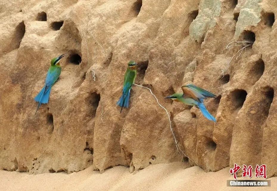 澄迈花场湾,蜂虎筑巢安家。卢刚 摄(资料图) 儋州新英湾 数千亩红树林连绵青翠 自带“饭勺”的勺嘴鹬 年年流连滩涂,觅食寻鲜