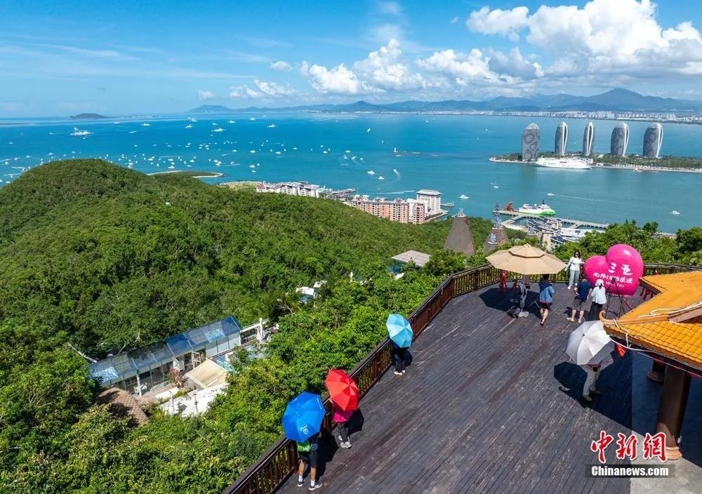 在三亚鹿回头风景区俯瞰三亚湾风光。骆云飞 摄(资料图) 山、海、城、岛相融相依 尽显“城市会客厅”魅力