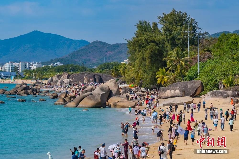 天涯海角游览区。骆云飞 摄(资料图) 湾西,天涯海角巨石矗立海边 湾东,鹿回头黎族爱情传说动人 登高远眺,尽览鹿城风华 湾内,三亚河口游艇游船往来穿梭