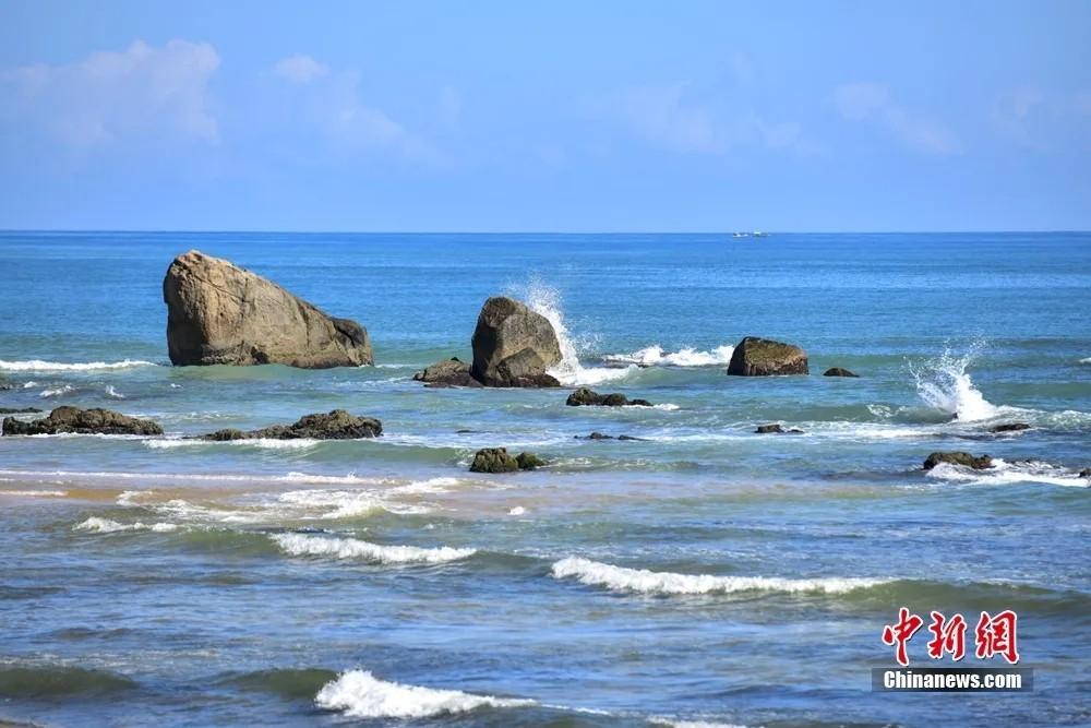 昌江棋子湾美景怡人。昌江黎族自治县委宣传部 供图(资料图) 海南岛西部,棋子湾往南 是东方感城港湾 这里海天辽阔,渔舟点点 水产丰饶,珍稀鸟类翩跹 也是偶遇白海豚的奇遇之地