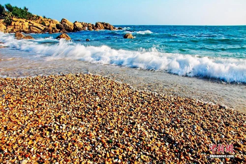 天涯海角游览区 景区供图(资料图) 万宁山钦湾 黑色火山熔岩礁石绵延数百米 海蚀拱形燕子洞,似欲凌空飞起 万宁大花角 层层叠叠的鹅卵石铺满海滩