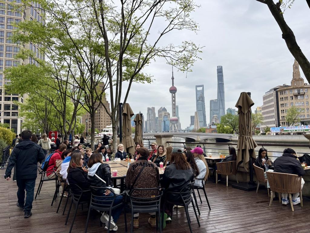 4月23日,外国游客在苏州河畔(虹口段)休憩。 他喜欢虹口的很多地方,尤其是各类文化场所,比如社区图书馆、上海鲁迅纪念馆,即将开放的上海文学馆也令他充满期待。还有鲁迅公园,在他看来是商业和文化相互融合的地方,富有魅力。摩天大楼的建设也令他着迷,他说:“上海的新地标(北外滩91街坊项目,未来将建成480米高的“浦西第一高楼”)在这里不断生长,周围也在开发新的设施,这对我们和社区都有很大的价值。” 西交利物浦大学国际研究系副教授李丽莎(Alessandra Cappelletti)也在中国生活多年,“从来不会孤单。如果遇到问题,总有单位和人可以联系”。她记得,有次家人需要救护车,“我刚打完电话,他们就敲门了。非常快速的医疗服务。这在欧洲很难实现。” 中国也给了她满满的安全感。有段时间,她因消化问题夜里睡不好,凌晨两三点想出门走走。“真的太棒了,我可以在深夜散步,完全不用担心安全问题,夏天穿着睡衣出门也可以。我记得有个夏天,凌晨3点,也许是太热了,我看到很多人在外面散步,当时真的很惊讶。” 她也习惯网购,快递到了就让放在门口,“没人担心东西会被偷,即便楼道里没有监控”。她认为,市民的公共责任感非常高,这可能是双向塑造的结果,既有文化因素,也离不开公共机构的支持,共同培养了公民的安全意识与责任感。 漫步15分钟社区生活圈,李丽莎关注到社区为老年人、残疾人等社会弱势群体提供的支持,“以高效的方式尽可能满足不同人群的需求,这意味着政府不是只在意有生产力的人,而是重视每个人。” 来自俄罗斯的留学生Daria Umenko喜欢上海的建筑和历史,非常享受漫步。她说:“我喜欢在中国生活和旅行,通常是独自旅行,作为一名年轻女性,我感到完全安全。人们很友好,总是乐于帮助我,即使我的中文不好。”