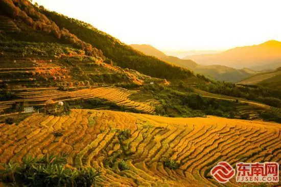 华安县湖林乡石井村的千亩梯田满目金黄。李倩莹 摄 金色是秋天的代表色,秋天最美的风景要数田间地头的绝美梯田。在湖林乡石井村,群山环抱着千亩梯田,金色稻浪层层叠叠,蜿蜒逶迤绕云间,风吹稻浪美不可言。梯田次级而下,缠山绕梁,十分壮观。 金秋时节,石井梯田正焕发着成熟和丰收的气息。成熟的稻田仿佛为大山披上了金装,远远望去黄绿相间宛若油画一般。稻田里金色的美景、田野间忙碌的身影、院坝上收获的喜悦,共同绘制出一幅秋天里乡村振兴的金色画卷。 漳州南靖县田螺坑土楼群 赏秋看点:土楼秋色 最佳观赏时间:10月-11月 田螺坑村位于福建省漳州市南靖县,田螺坑土楼群在2008年被联合国教科文组织列入《世界文化遗产名录》。梯田上种满了稻子,秋天的田螺坑梯田,蜿蜒绵延,一层又一层,叠在一起美轮美奂。来到坡底公路,田螺坑土楼群犹如布达拉宫横空出世,巍峨耸立,庄严肃穆,在阳光下一派金碧辉煌。 土楼客家人遵从自然成长规律,用高山天然泉水灌溉,人工插秧、除草,有效保留了大米的原汁原味,为大米品质打好优良的基础。越来越多的农民“唤醒”撂荒地,闲置土地再“生金”,土楼边上的田野更加富有农作气息。 不仅如此,心灵手巧的“晒秋人家”,把大地当做画板,绘制出了南靖最诗意的秋天。土楼大米、土楼糯米酒、茶叶等,一批批土楼“土特产”送到游客面前。 三明尤溪县桂峰村 赏秋看点:古村晒秋 最佳观赏时间:10月-12月 所谓晒秋,是将成熟的农作物,蔬菜以及果实晾晒。一来有庆祝丰收的含义,二来将食材晒干贮藏起来,为食材匮乏的冬日做准备。 桂峰村四面环山,缺少大片平坦的土地,为了应对地势带来的影响,聪明的桂峰人把房屋错落有序地排列在坡面上。竹制的架子结合周围的环境顺势搭成一座座小小的观景房,长长的木架托起圆圆的晒匾,各种果实铺成一幅幅五彩斑斓的调色板。 秋风起,晒秋忙,遍地是斑斓的丰收色彩。晾晒架上晒的既是丰收,也是喜悦,更是幸福。“五谷丰登、瓜果飘香、春华秋实、秋收冬藏 ”这些朴实无华的词句,正是桂峰最美的生活写照。 武夷山国家公园1号风景道 赏秋看点:秋色满“园” 最佳观赏时间:10月中旬-12月中旬
